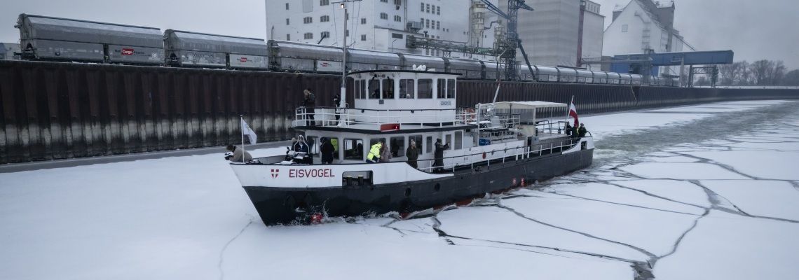 Bereits ab Temperaturen von minus sechs Grad frieren die Fahrrinnen der Hafenbecken innerhalb eines Tages zu, bei noch tieferen Temperaturen kann sich das Eis innerhalb weniger Stunden massiv verdichten. Gerade unter diesen Bedingungen kommt der „MS Eisvogel“ eine zentrale Rolle zu: Mit ihrem Gewicht, ihrer Motorleistung und spezieller Bauweise hält sie die Hafenbecken offen und schützt ankernde Schiffe vor Schäden durch Eispressung.
