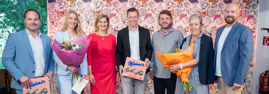 Wien Holding-Geschäftsführerin Sigrid Oblak, der Gemeinderat und Landtagsabgeordnete Marcus Schober, der Döblinger Bezirksvorsteher Daniel Resch, Bruno Wöran, Bewohner im Haus Döbling in den 80er- und 90er-Jahren sowie die Viennabase Geschäftsführung Thomas Lebinger und Alexandra Radl-Hanzal sprachen im Rahmen des feierlichen Festakts über Highlights aus den 60 Jahren und über die Wichtigkeit des leistbaren Wohnens für junge Menschen.