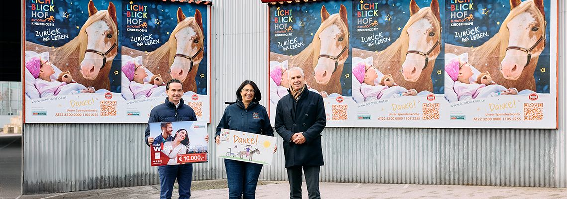 Im Herbst 2025 startete eine neue Plakat-Kampagne des gemeinnützigen Vereins Lichtblickhof Kinderhospiz. Dieser bietet palliative Begleitung und Entlastungsaufenthalte für unheilbar erkrankte Kinder und ihre Familien an. Speziell ausgebildete Therapietiere schenken hier auch in schwersten Zeiten Glücksmomente, Lichtblicke und besondere Erlebnisse. Die Wien Holding unterstützt diese Kampagne mit einer Spende in Höhe von 10.000 Euro, die Plakatierung wird von der Gewista kostenfrei durchgeführt.